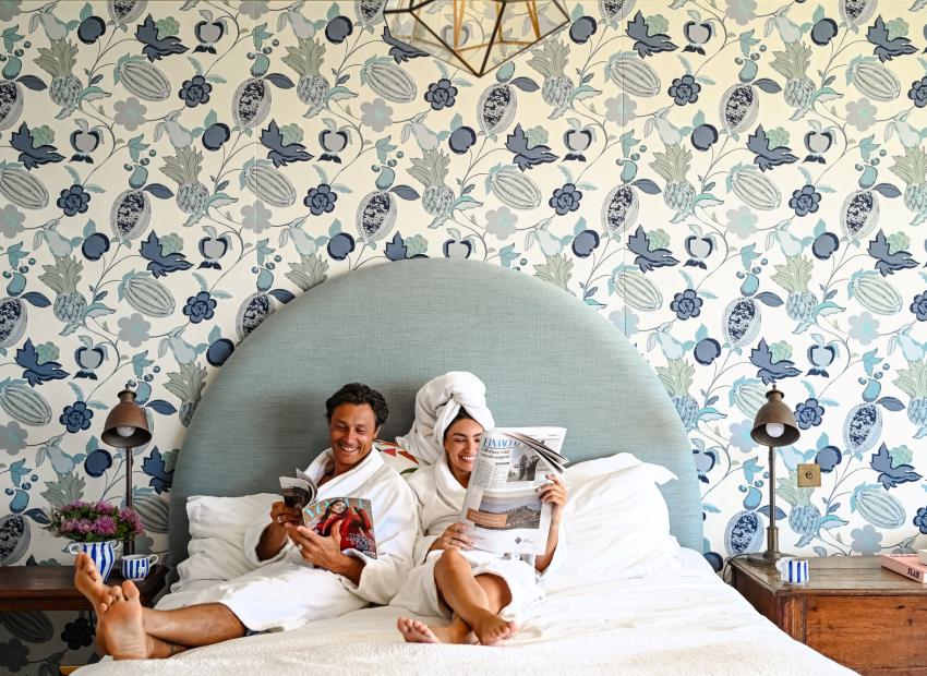 Each guest room and suite at Halcyon House has been individually designed by interior designer Anna Spiro in her signature eclectic style. Halcyon House rooms and suites feature antique furniture, fabric upholstered walls, luxurious king size beds and a private balcony or terrace.