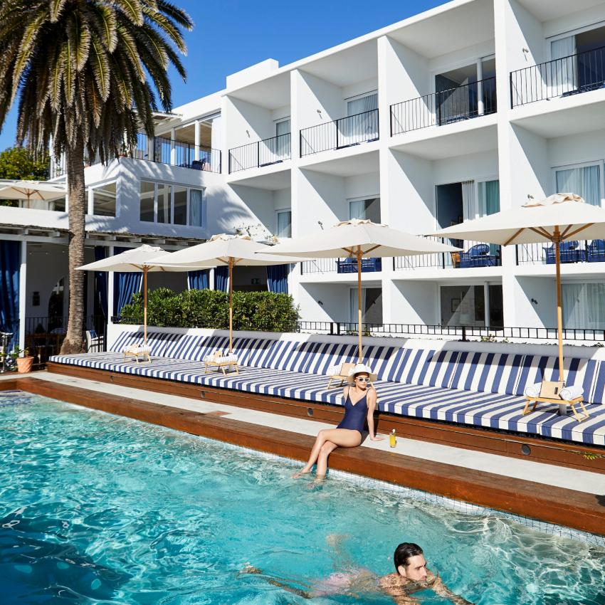 Lounge by our iconic pool with ocean breezes and sun-drenched views — the perfect place to unwind and soak up the day.